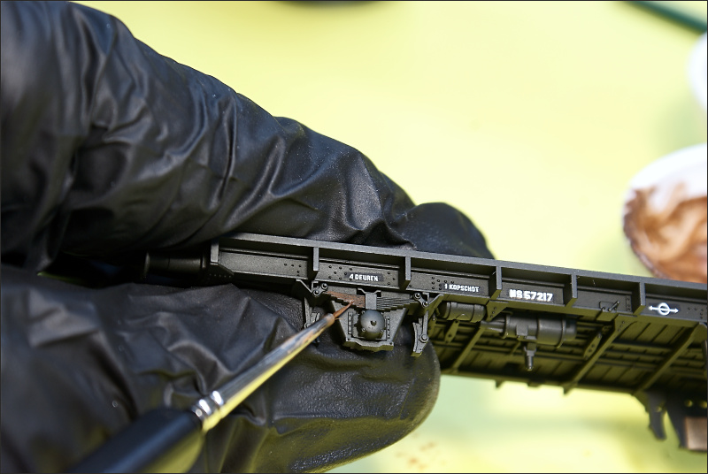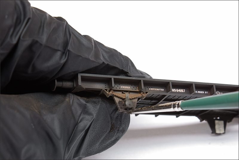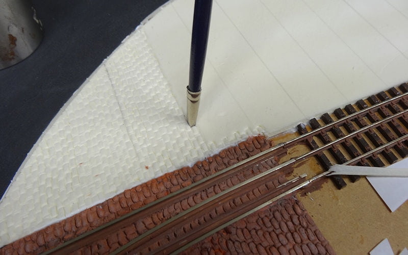 En dan maar stempelen. De rand langs het spoor heb ik omdat het wat dun is gewoon opgevuld met klei.