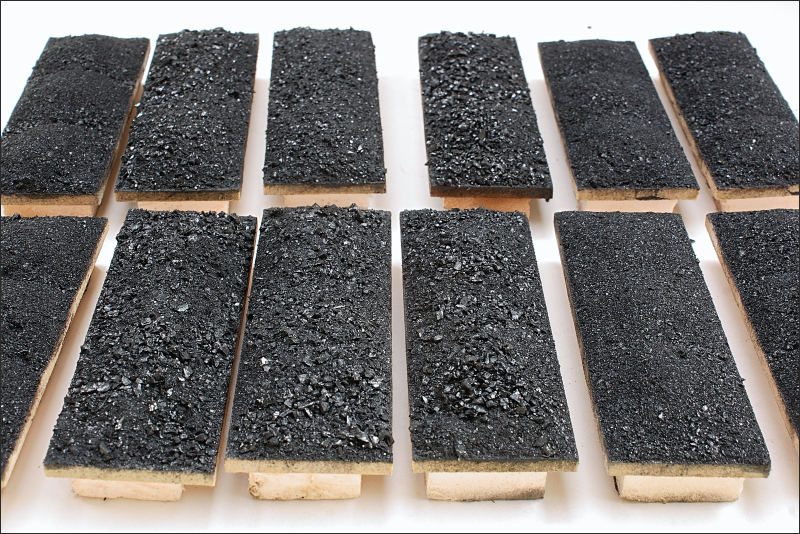 Ik heb wat moeten ‘wrikken’ om het passend te krijgen in de praktijk. AnyRail is het er soms niet mee eens (bijvoorbeeld blok 4). Nu wordt je in de praktijk daar weer voor gestraft. De kans op ontsporen is wel wat toegenomen. Bijvoorbeeld lok’s met kleine voorwieltjes hou ik voorlopig (helaas) van de baan. Verder heb ik getracht om de enorme hoeveelheid bekabeling wat uit het zicht te brengen. Daartoe heb ik ‘graszoden’ en behang aangebracht. Het ziet er nu als volgt uit: