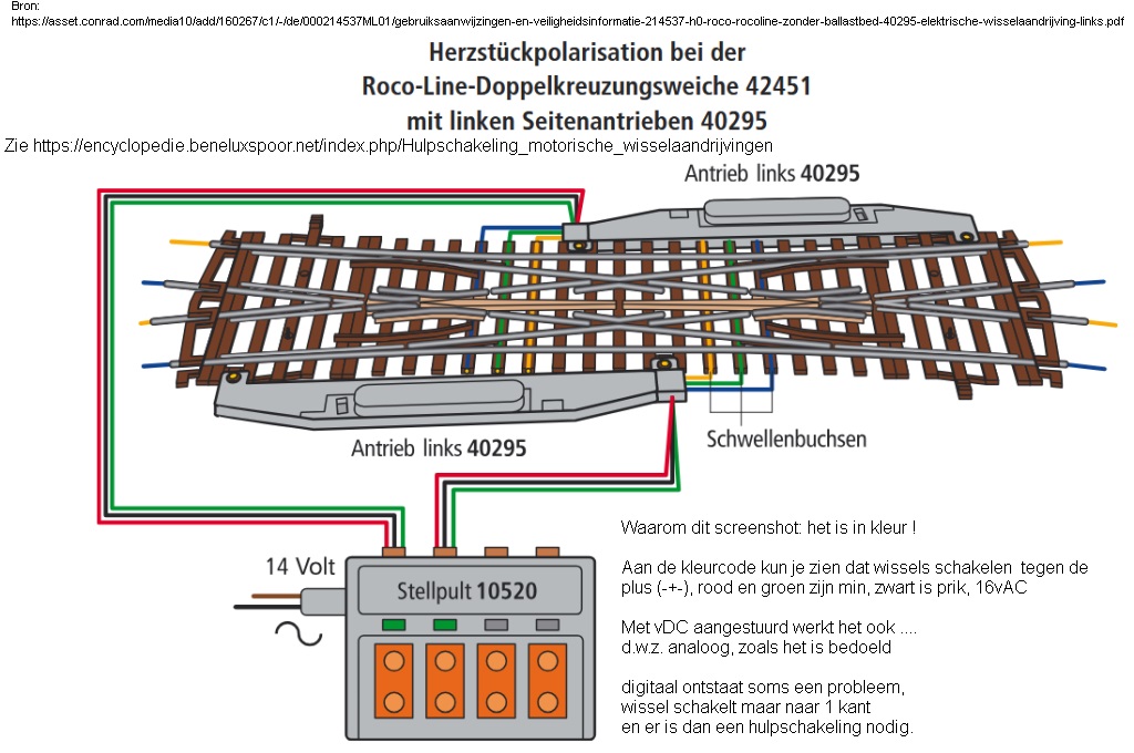 De complicatie doet zich voor bij Hoffmann aandrijvingen, Conrad aandrijvingen, Roco oude stijl aandrijvingen, Cobalt, Tortoise en MTB (analoge) wisselmotoren (de MP-reeks), en bij tal van decoders. Niet te lang blijven puzzelen als je hier tegen aan loopt. Geen nieuwe wisselaandrijvingen kopen, maar vertrouwen op een werkende hulpoplossing.