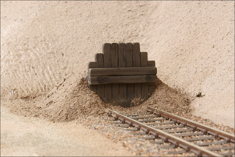 Het is een vereenvoudigde uitvoering van een stootheuvel. Artitec heeft onderstaand model stootheuvel ooit uitgebracht met aan de zijkanten rechtopstaande dwarsliggers. Op plekken waar geen beperking van het grondlichaam speelt kunnen de zijkanten worden weggelaten, waarbij er dan alleen een voorscherm overblijft.