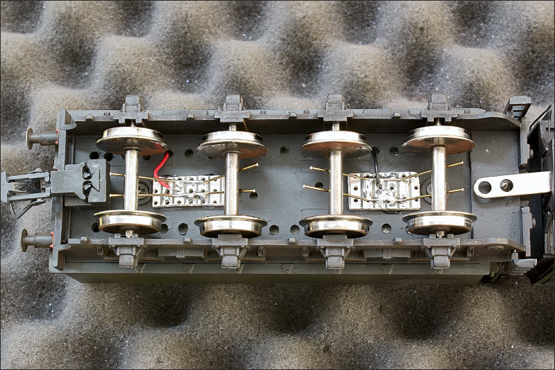 Ik heb geen stekkerverbinding gemaakt tussen loc en tender. De draadlengte naar de decoder is ruim bemeten zodat het wel werkbaar blijft.