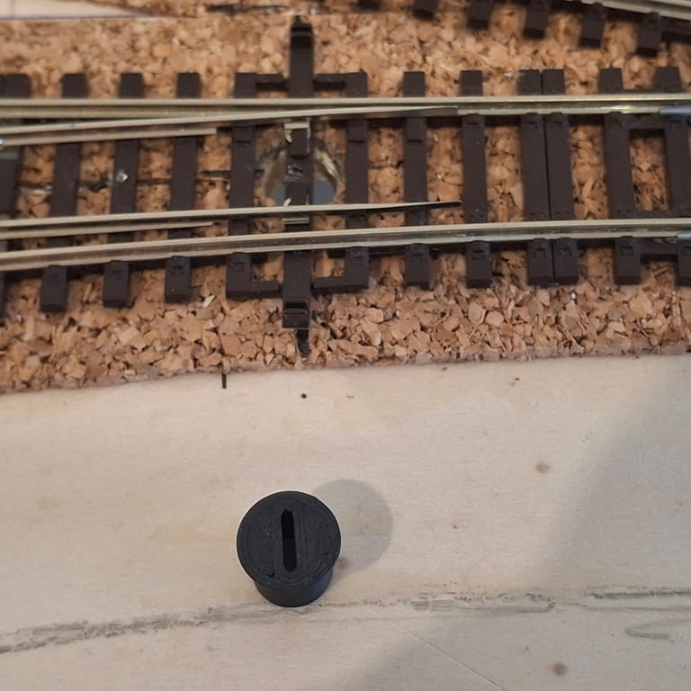 Later het pinnetje opmaat afslijpen anders kan er geen treintje overheen rijden