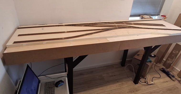 Onder het baantje is inmiddels ook genoeg te doen en nu kan ik eindelijk de wissels voorzien van servo-aandrijvingen.