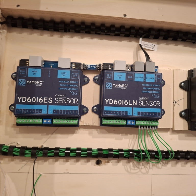 De YaMoRC Centrale met S88 gemonteerd en de 1e bezetmelders aangesloten.
